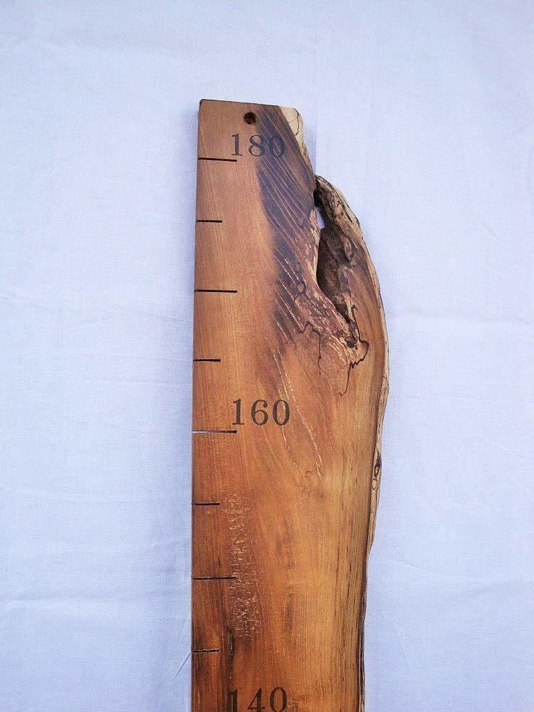桑の天然無垢材を使用した身長計。 出産祝いやご入学祝い、お誕生日のプレゼントにいかがでしょうか。 世界にひとつしかない1点もので、天然無垢材ですので、お子様の成長と共に風合いの変化も楽しめます。