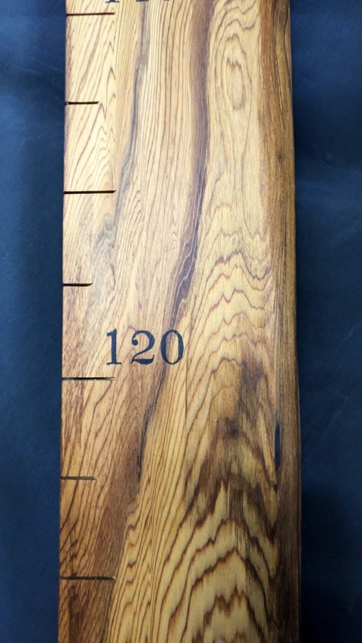 屋久杉の天然無垢材を使用した身長計。